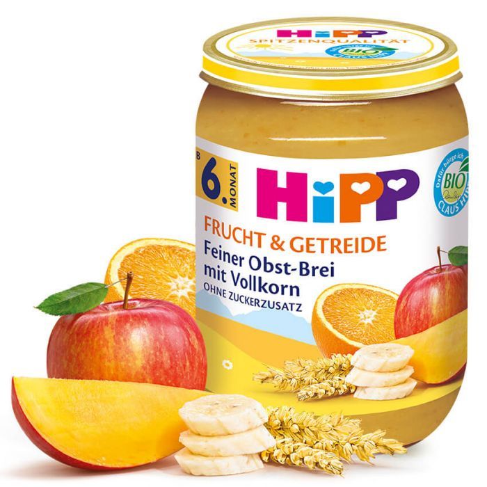 Hipp био пълнозърнеста каша плодова 6М+ 190 гр е подходяща храна за след 6-месечна възраст на бебето ви.