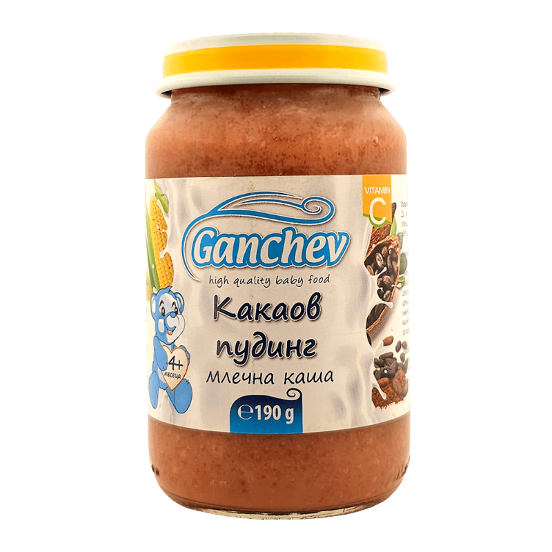 Ganchev Какаов пудинг е млечна бебешка каша, предназначена за деца над 4 месечна възраст.
