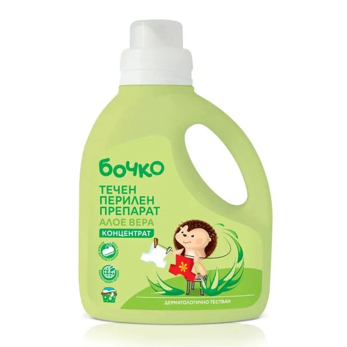 Формулата на течен перилен препарат Бочко е с вложен натурален сапун. Има отлично изпиращо действие и е изключително нежeн към чувствителната бебешка кожа. Вложеният екстракт от алое вера има успокояващо действие, благодарение на което предпазва кожата от раздразнения и помага за омекотяване на тъканите. Този верен помощник съдържа 100% разтворими активни съставки, които не остават в бебешките дрешки след изпиране и изплакване. Не съдържа оцветители и фосфати. С отличен изпиращ ефект дори при 30°C.
