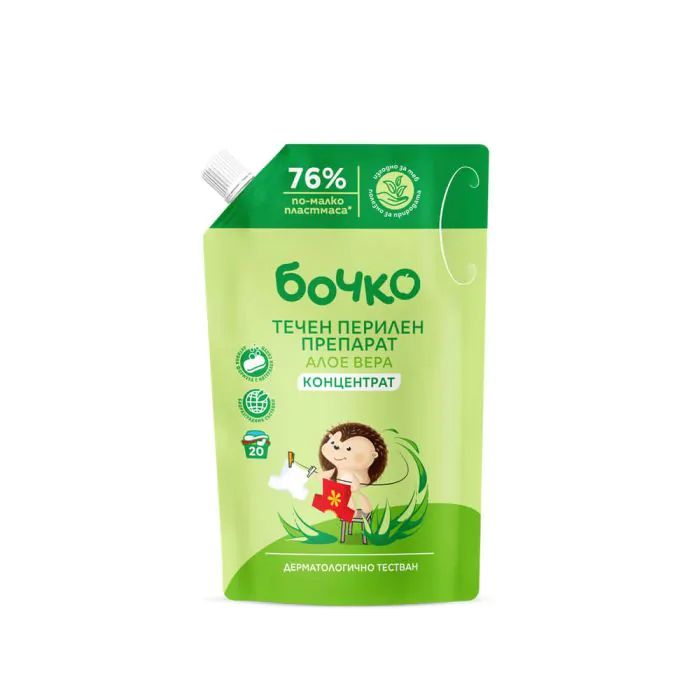 Бочко Алое Вера предлага отлично изпиране и е изключително нежен към чувствителната бебешка кожа. Екстрактът от алое вера, вложен във формулата, има успокояващо действие, което помага да се предпази кожата от раздразнения и омекотява тъканите. Продуктът съдържа 100% разтворими активни съставки, които не остават следи върху бебешките дрешки след изпиране и изплакване. Не съдържа оцветители и фосфати, като осигурява отлично изпиране дори при 30°C.
