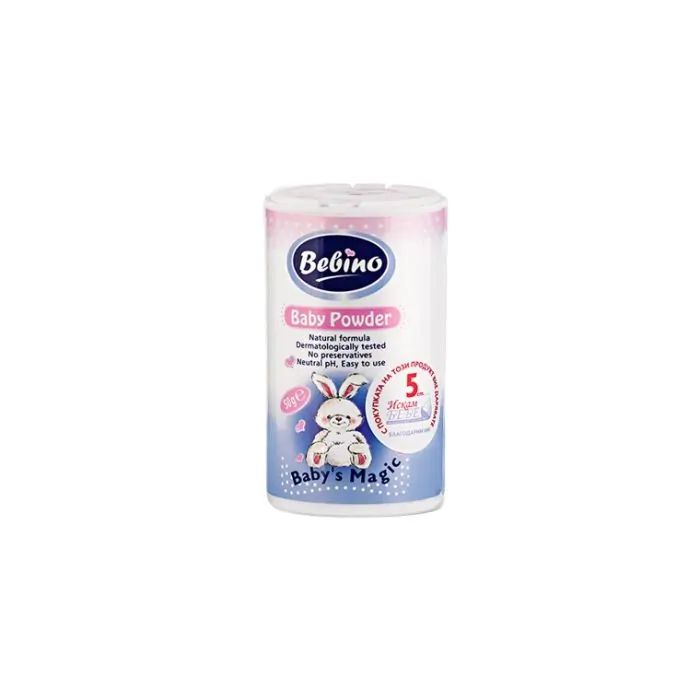 Тя е разработена така, че да абсорбира излишната влага от бебешката кожа и по този начин да предотвратява раздразнения и възпаления. Бебино бебешка пудра за тяло има балансирано, неутрално pH и деликатна текстура, което я прави подходяща за ежедневна употреба дори при най-нежната бебешка кожа. Лесна е за нанасяне и прави кожата по-здрава, мека и подхранена.