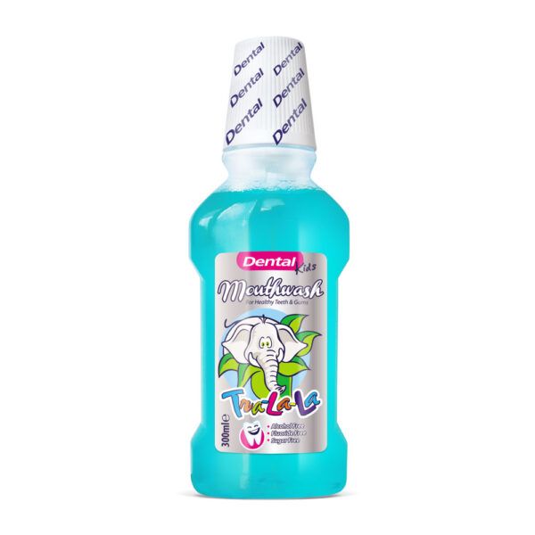 Водата за уста Tra-la-la цялостно почиства устата и укрепва венците.