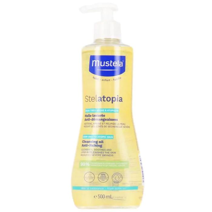 Мустела Стелатопия Душ-олио e душ-олио, специално създадено за новородени, бебета и деца с атопична кожа.
