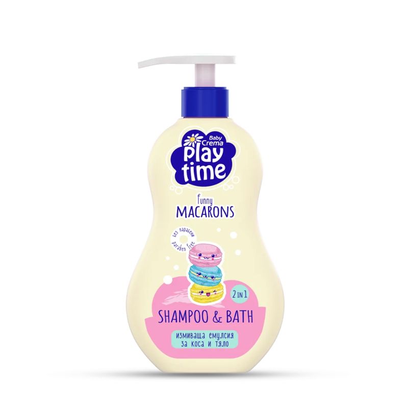 Къпането никога не е било по-забавно с новата, 2 в 1 измиващата емулсия Play Time, Funny Macarons.