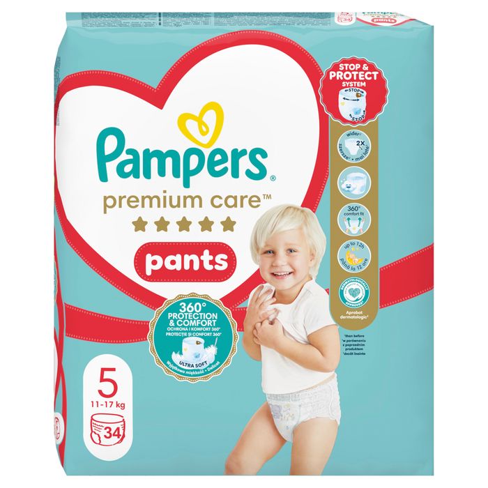 Пелени-гащички Pampers Pants Размер 5 представляват пелени за еднократна употреба под формата на гащички, подходящи за използване от деца между 12 и 17 кг.