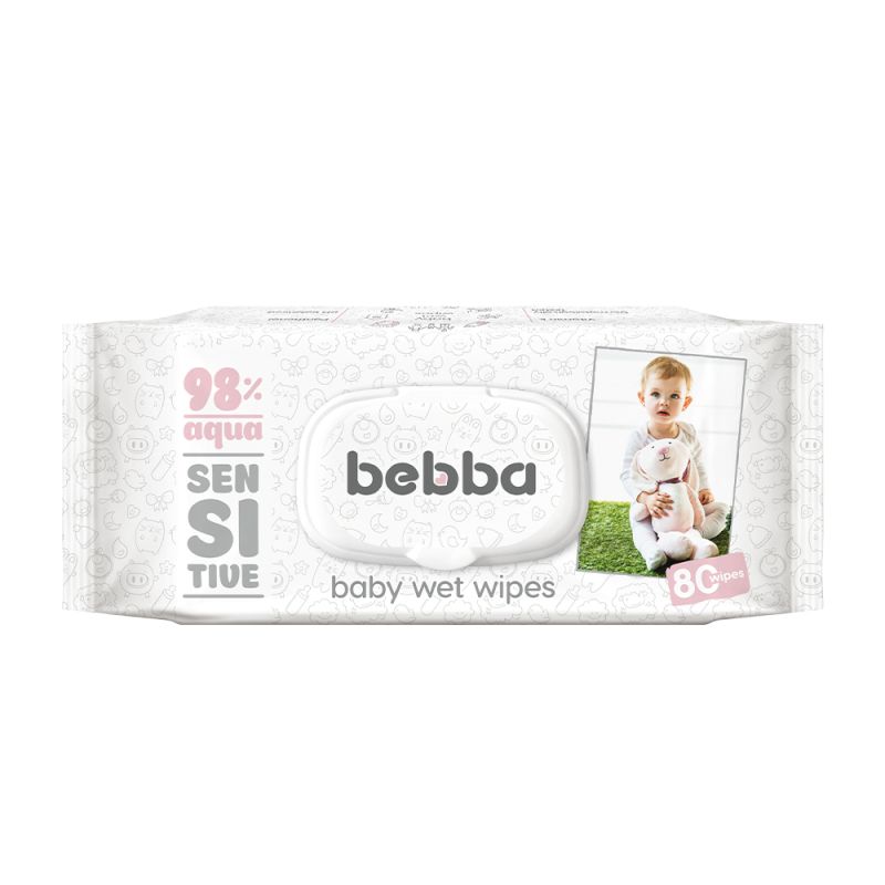 Bebba Sensitive мокри кърпи са напоени с 98% чиста дейонизирана вода, което ги прави идеални за чувствителната бебешка кожа.