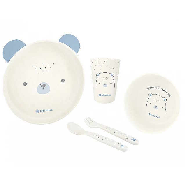 Кikkaboo Bear with me пластмасов сет за хранене мече син цвят
