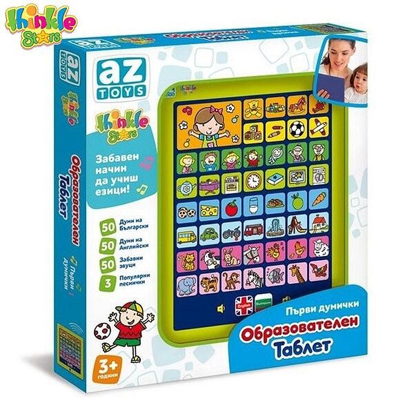 Thinkle Stars – Образователен таблет „Първи думички“ помага на малчуганите да научат първите си думи на български и английски език по забавен и лесен начин.Чрез цветни илюстрации, ясни произношения и интерактивни упражнения, детето развива речника си, подобрява слуховата памет и изгражда увереност в комуникацията. Смяната между двата езика става с един бутон, което улеснява естественото усвояване на нови думи чрез игра.Thinkle Stars – Образователен таблет „Първи думички“ превръща ученето в приключение – подходящ както за самостоятелна игра, така и за време, прекарано заедно с родител.